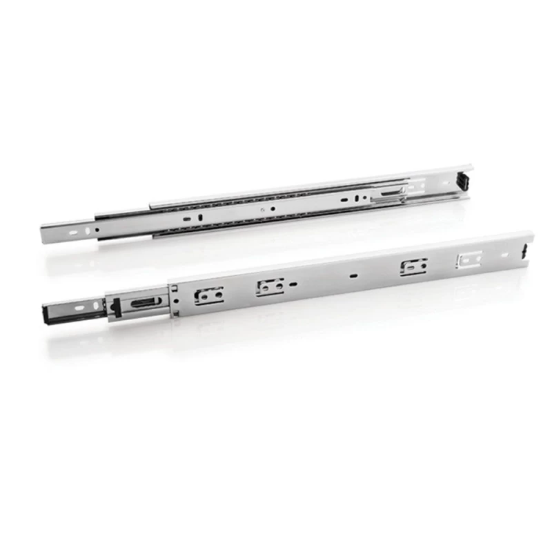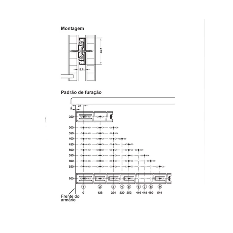 As corrediças telescópicas H45-S da marca Häfele, possibilita a abertura total da gaveta e um fechamento suave e silencioso. Para maior praticidade, possui travas laterais que facilitam na retirada da gaveta.