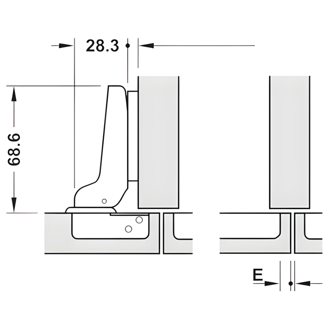 Dobradiças Metalla 330 curva 105º sem mola da Häfele oferece alta durabilidade, design discreto e movimento suave para portas de móveis. São resistentes à corrosão e têm acabamento elegante. Com sistema de calço clip, garantem fácil instalação e fechamento silencioso.