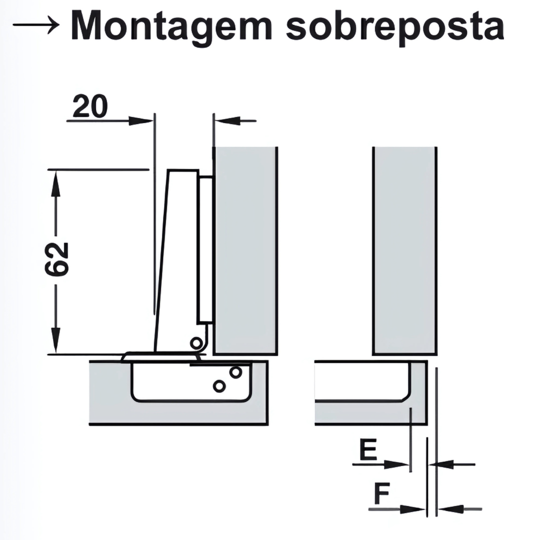 DOBRADIÇA METALLA 330 COM AMORTECIMENTO 95º RETA – NIQUELADA